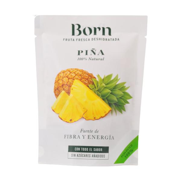 La Piña tiene propiedades digestivas que se incrementan al extraerle el agua. Rica en fibra ya que en 100g de Piña Semideshidratada Born hay mas del doble que en 100g de piña natural.